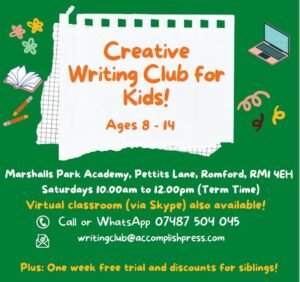 Here’s a new offering from Accomplish Press. We are now offering young aspiring authors a chance to start writing and honing their craft early. If you have a budding writer living with you, or you want to encourage a young person to explore and improve their writing skills, then this will be of great interest to you!
